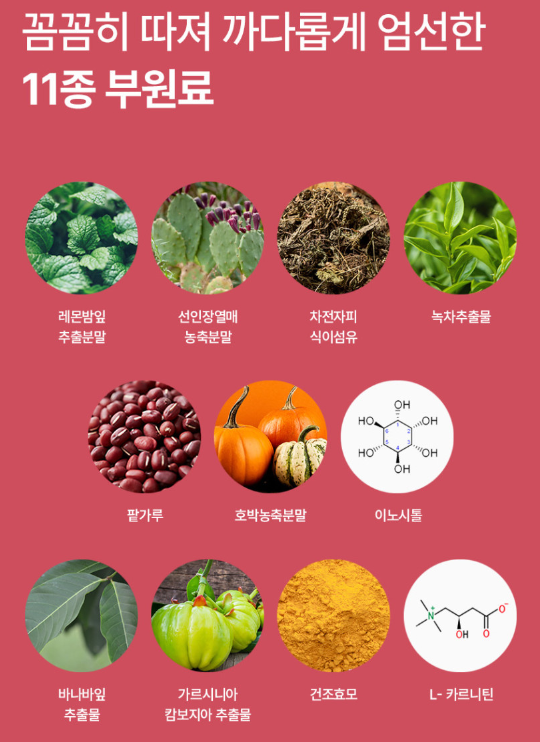 주요성분: 모로실, C3G, 가르시니아, 비타민B군 외